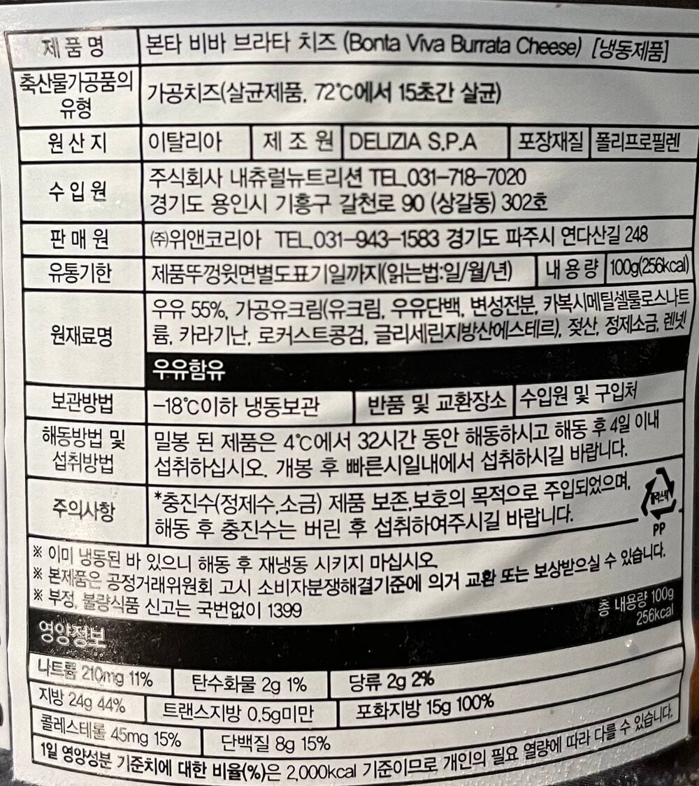 보관은 냉동고에 하시고 먹기 하루 전 냉장고에서 해동하신 후 드세요 - 더 맛있게는 해동한 부라타를 냉장고에서 꺼내 상온에서 2-30분 정도 기다렸다 드시면 크리미한 감이 좀 더 살아납니다