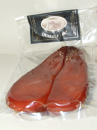 Bottarga는 일반적으로 회색 숭어 또는 참다랑어를 소금에 절이고 절인 어란 주머니의 진미입니다. 가장 잘 알려진 버전은 지중해 주변에서 생산됩니다. 비슷한 음식으로는 일본의 가라스미와 대만의 우유츠가 있는데 더 부드럽다.