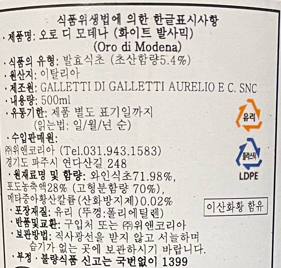[Galletti] 화이트 발사믹 오로 디 모데나