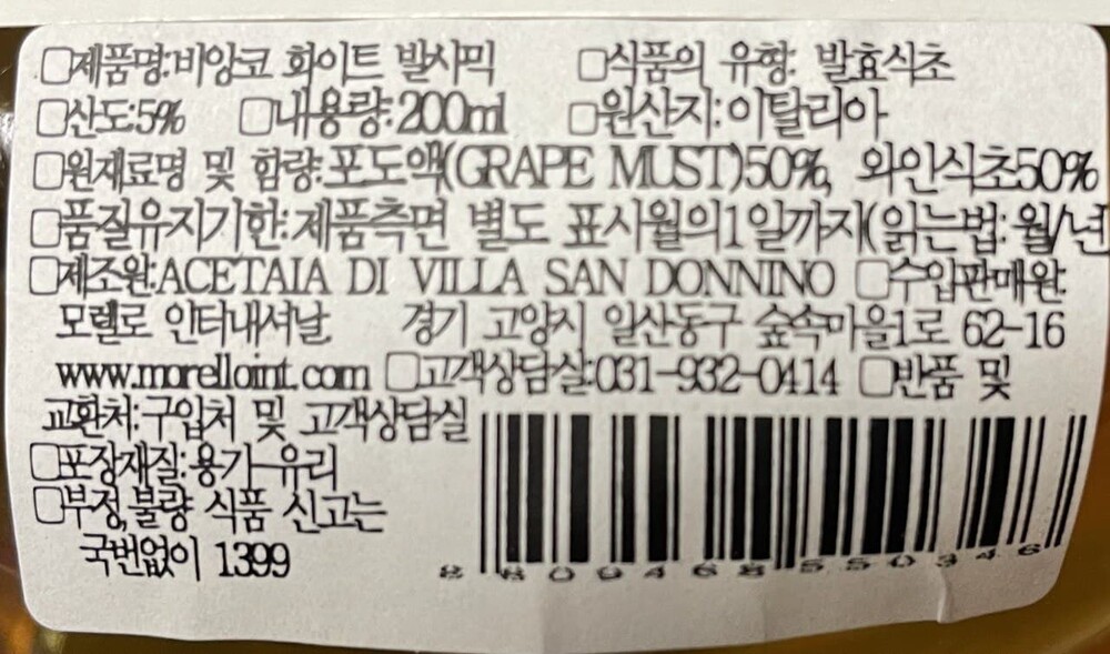 - 성분: 포도액 50%, 와인식초 50%