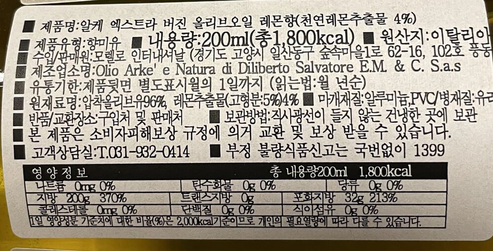 - 성분: 엑스트라버진 올리브오일 96%, 레몬추출액 4%