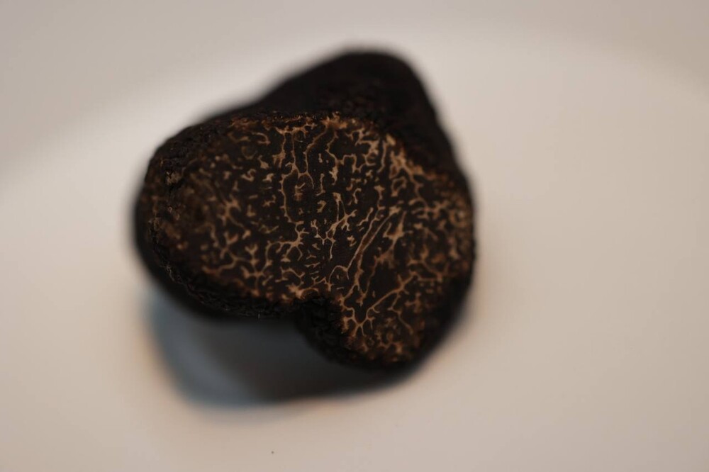 이탈리아 블랙 윈터 트뤼플에는 작고 다이아몬드 같은 돌기가있는 거친 반구형 결실이 있습니다. 송로 버섯의 표면은 완전히 성숙되면 젯 블랙입니다. 육체는 성숙 할 때 옅은 회색에서 진한 초콜릿 갈색까지 다양합니다. 살은 넓은 흰색 정맥으로 대리석으로 만들어져 다른 검은 송로 버섯 품종과 구별됩니다. 이탈리아 검은 겨울 송로 버섯의 가장 매혹적인 품질 인 향이며 풍미를 나타내는 풍미 있고 매운 향이 나는 향수입니다. 맛은 마늘, 샬롯, 헤이즐넛, 초콜렛의 미묘한 색조로 구별됩니다.