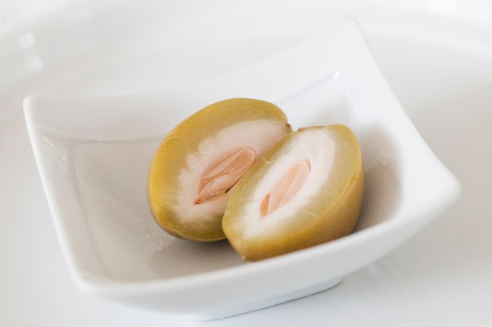 그들은 이탈리아 올리브와 비슷하지만 맛이 상당히 다릅니다. 팔리지 않는 복숭아를 이런 식으로 구한 Agricola Verticelli의 설립자 Salvatore Parente의 "유레카 제품"입니다.