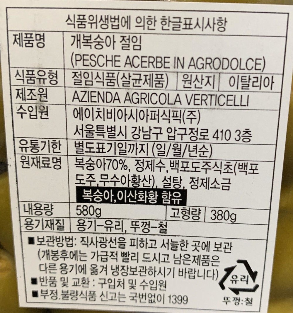 개복숭아절임 (페스키올레)